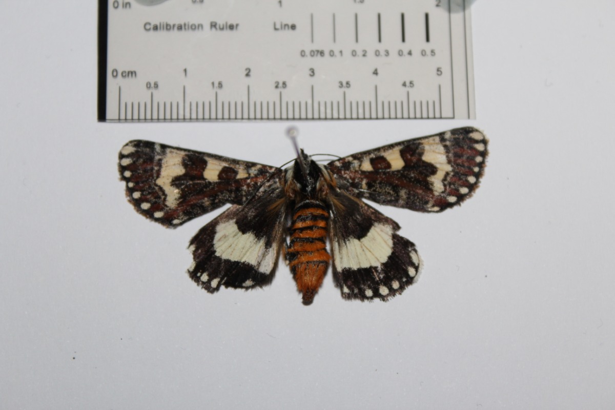 Picture of suspected Pasture Day Moth (Apina callisto) collected in Little Desert region (Victoria) during April 2020.